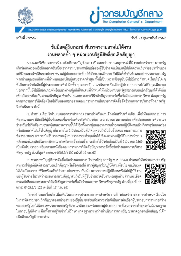 แนวทางปฏิบัติในการกำหนดหลักเกณฑ์และสิทธิในการพิจารณาสำหรับการจ้างก่อสร้างข่าวที่น่าสนใจ, ข่าวประชาสัมพันธ์มีนาคม 1, 2026มีนาคม 1, 2026 Post Views: 31 แนวทางปฏิบัติในการกำหนดหลักเกณฑ์และสิทธิในการพิจารณาสำหรับการจ้างก่อสร้าง